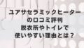 ただし、脱衣所やトイレ、デスク下のような狭い空間では十分な暖かさを感じるという声が多く見られます。メイン暖房というより「スポットヒーター」としての利用が現実的かもしれませんね。